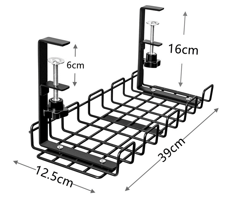 2 | Cable management tray under desk cable organizer Size: 39x12.5x5cm Colors available: White /Black | 1 tray 2 cable holders 3 cable clips 3 cable ties 2 screws | |||