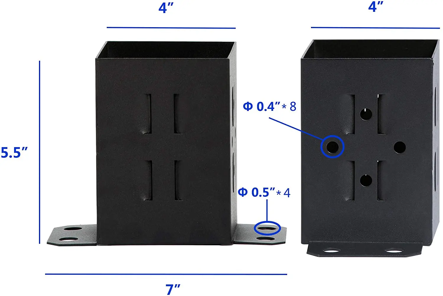4"*4" Fence Post Mount Concrete Deck Base Post with Black Powder Coated