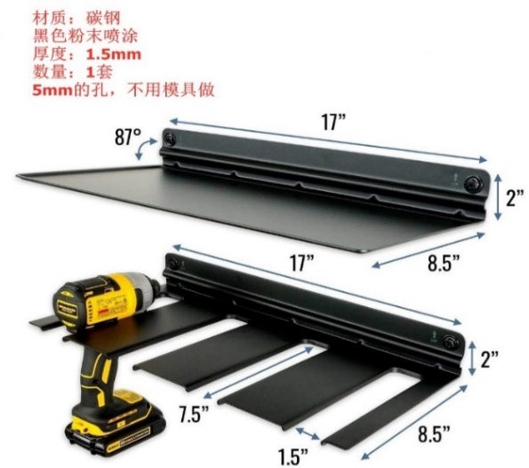 5 | Drill Storage Rack Size: 41x19.5x5cm Colors available: White /Black /Silver /Gold | 1 racks with screw set 0.65kg/Box; |