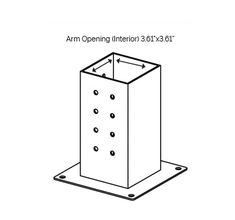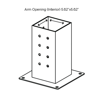 for 6”x6” Wood Posts Arm Opening (Interior): 5.62” x 5.62” Arm Opening (Exterior): 5.828” x 5.828” Gauge: 12-gauge Steel | |||
