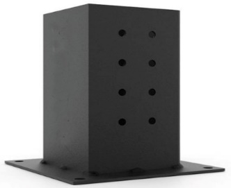 for 6”x6” Wood Posts Gauge: 12-gauge Steel Overall Size (1 Pc.): LxWxH: 14.75” x 14.75” x 14.75” Colour: Black Weight (1 Pc.): 25 lbs. Fastening Holes: 0.25” Securing Holes: 0.5” | ||||