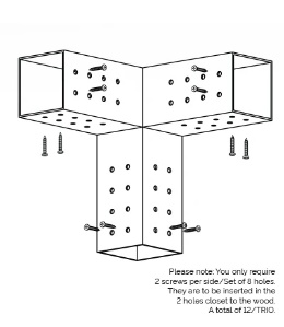 3 Arm Pergola Corner Bracket | for 4”x4” Wood Posts Overall Size (1 Pc.): Colour: Black Weight (1 Pc.): 8.5 lbs. Fastening Holes: 0.25” Securing Holes: 0.5 | |||