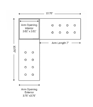 45 Degree Knee Bracket | for 4”x4” Wood Posts Arm Opening (Exterior): 3.75” x 3.75” Gauge: 12-gauge Steel | ||