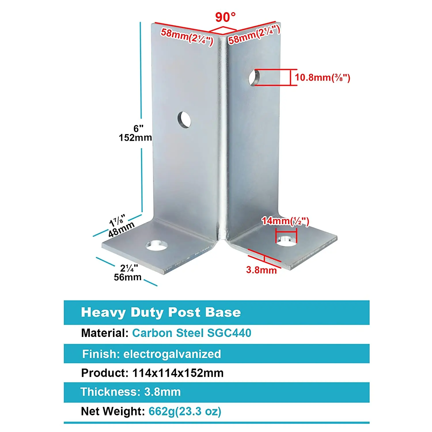 To solidly attach a square post to a concrete orwood deck.