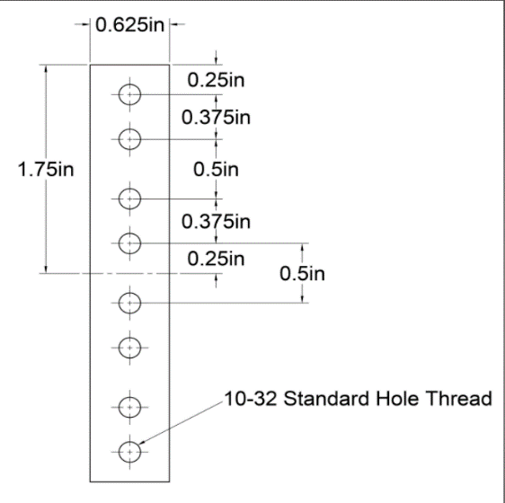 Description | 1 Space (1U) | 1.75" 1/8" thick heavy duty steel rail with tapped #10-32 holes Black powder coat finish. | ||