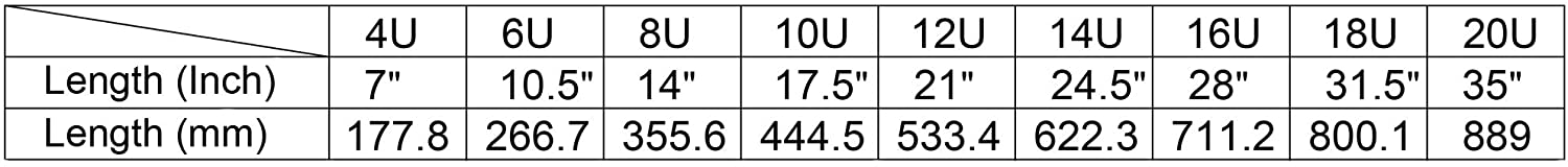 Specification 18.5" rack width, 1-3/4" (1U) height 18.5" rack width, 3-1/2" (2U) height 18.5" rack width, 5-1/4" (3U) height 18.5" rack width, 7" (4U) height |